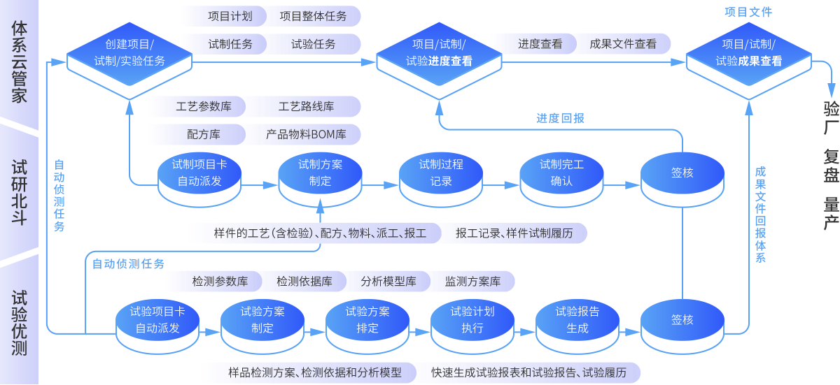 实现从试验需求提出到试验方案制定、试验派工执行及报告产出的全流程业务管理。