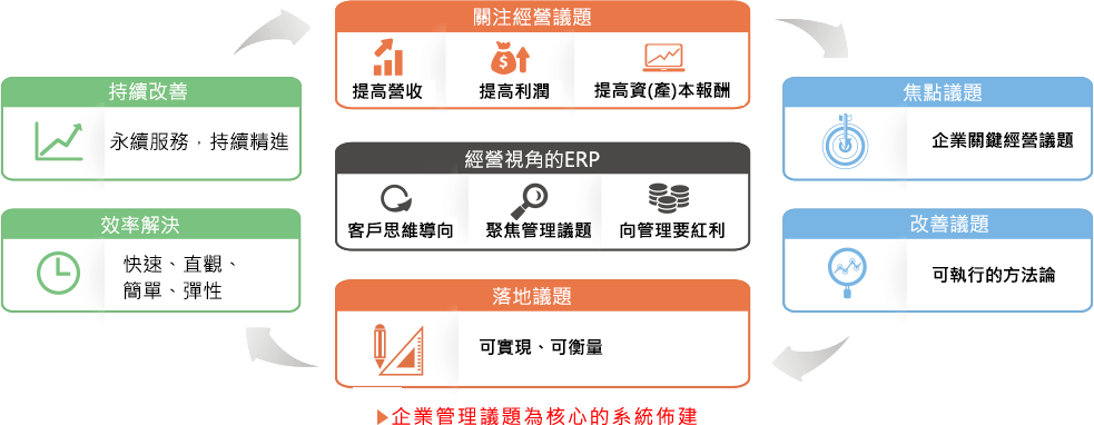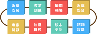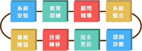 依據企業管理數位化的需求提供行業解決方案 從系統上線、顧問輔導、健診服務等各階段, 提供周延且立即服務,協助企業提升作業管理 效益,快速展現系統使用效率。