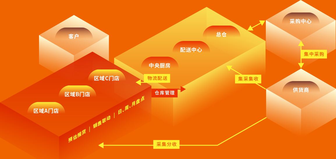 整合生产、供应链及配送体系,与财 务中心无缝衔接,