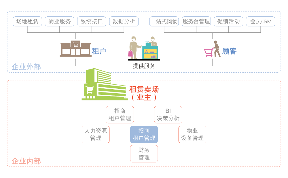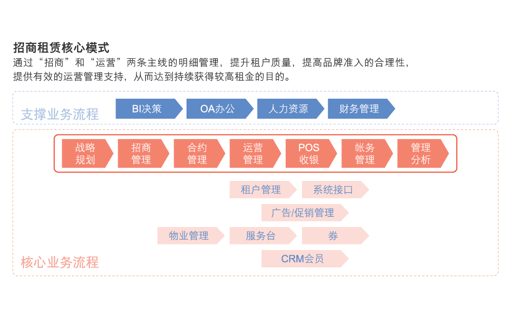 实现招商过程商户线上管理,集团共享各阶段招商信息。