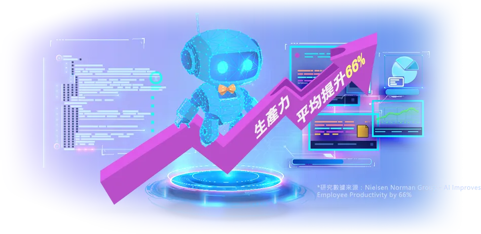 研究統計指出,善用AI協同工作的工作者,平均生產力提升66%