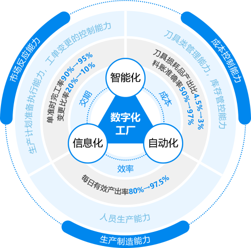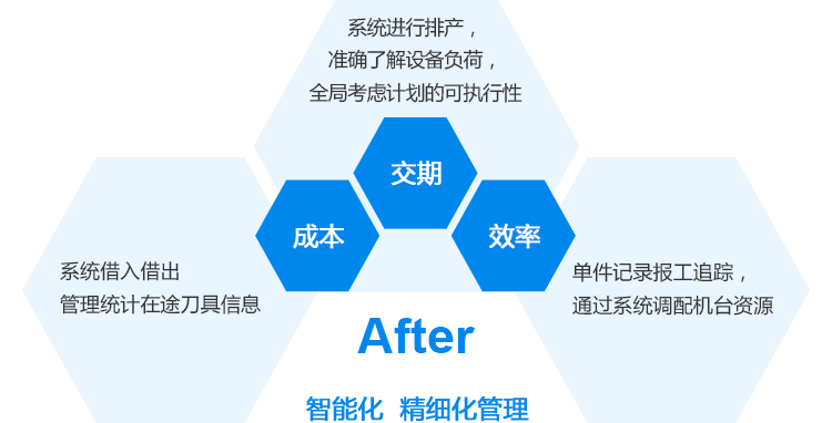 智能化使得车间信息更为透明、时实,再加上与客户的协作,使得生产计划明确、料掌控度高,库存有效管理,提高客户响应速度。