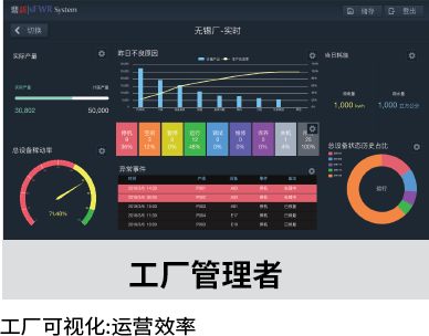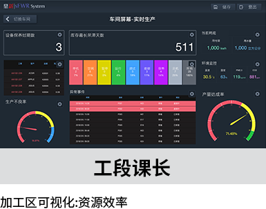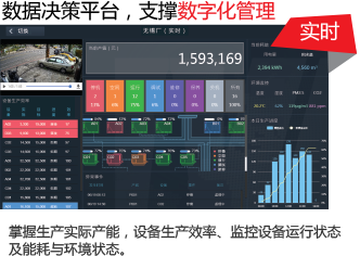 掌握生产实际产能,设备生产效率、监控设备运行状态及能耗与环境状态。