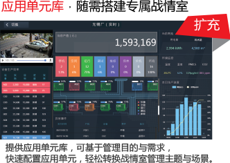 提供应用单元库,可基于管理目的与需求,快速配置应用单元,轻松转换战情室管理主题与场景。