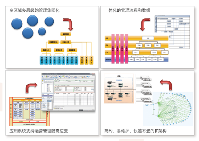 全面满足集团企业从制造-分销-流通不同发展阶段的多业态经营管理需求,为集团企业提供全方位信息化解决方案,让企业适时掌握全球信息,运筹帷幄于千里。